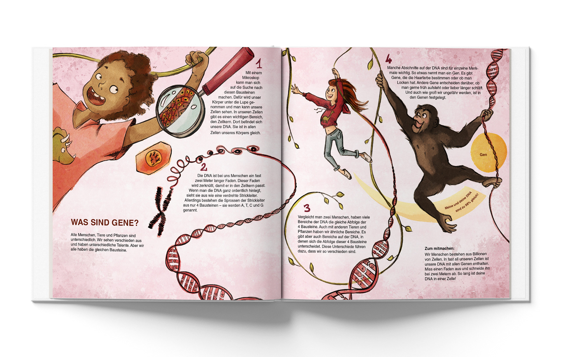 Für das Begleitbuch zur Ausstellung "Gene - Vielfalt des Lebens" im LWL Naturkundemuseum Münster entwickelte ich vier Illustrationen. Die Grafiken unterstützen die wissenschaftlichen Inhalte der Publikation und machen komplexe genetische Themen visuell zugänglich.